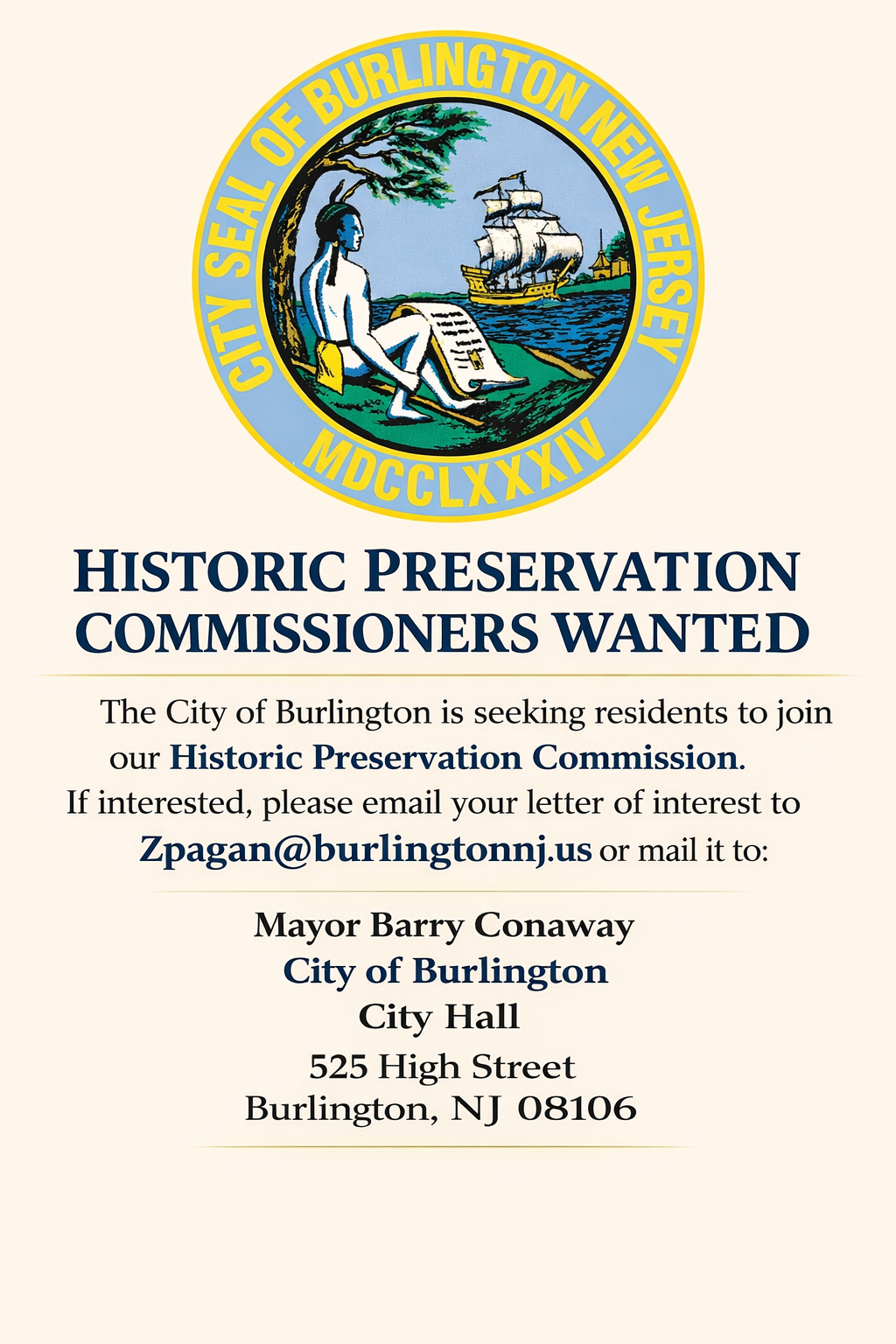The City of Burlington is dedicated to upholding the principles established by our Quaker founders in 1677 in their West Jersey Constitution, Concessions, and Agreements. These principles form the basis of our culture, which emphasizes mutual respect, personal freedom, and diversity.