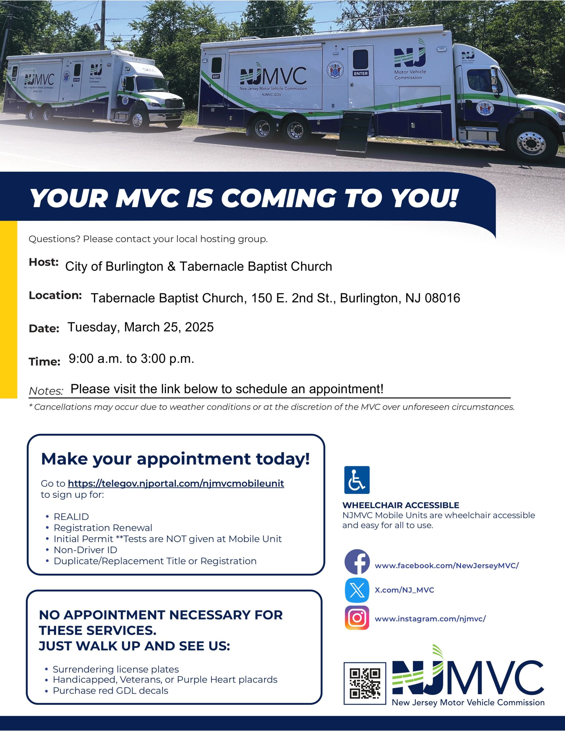 City Hall 525 High Street, Burlington, NJ, United StatesMeetings are held every 1st and 3rd Tuesday of the month, except in August, November, and December.