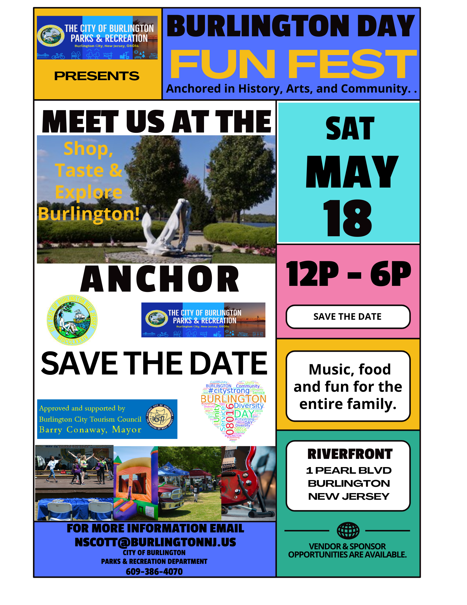Burlington Riverfront Promenade 1 Pearl Boulevard, Burlington, NJ, United StatesBurlington Day is an annual event that takes place every third Saturday of May since the 1970s. Residents of all ages and visitors from neighboring towns are invited to this free event to enjoy live bands, pony rides, entertainment, educational and recreational activities, and festival food. The event takes place on the 14-acre Riverfront Promenade, […]