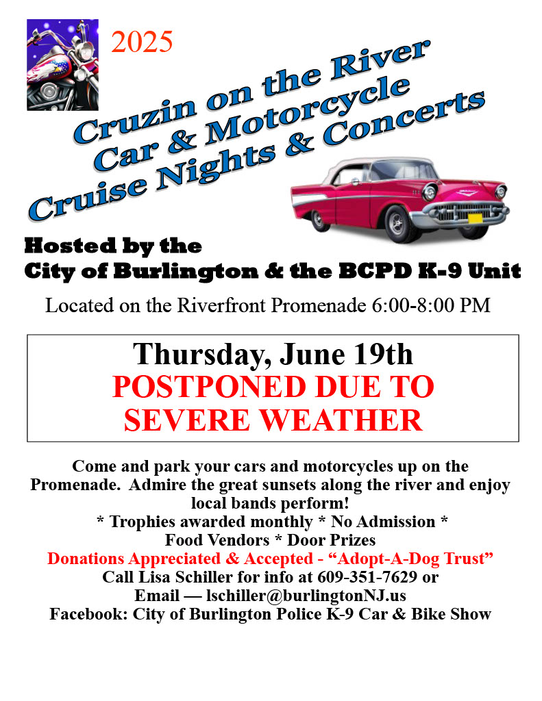 Cruzin on the River Car & Motorcycle Cruise Nights & Concerts – POSTPONED DUE TO WEATHER