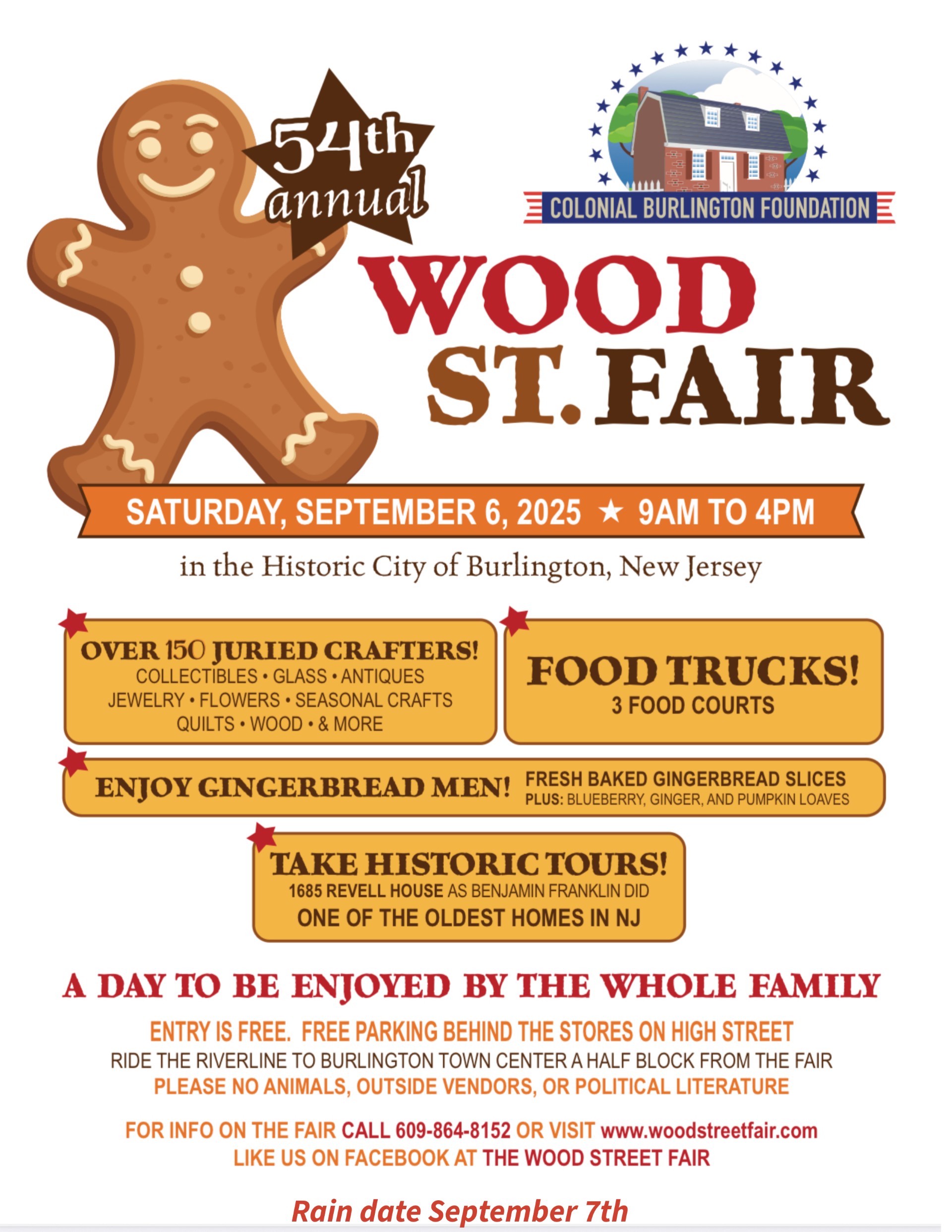 September 7, 2024 @ 9:00 am - 4:00 pm Wood Street Fair Wood Street Fair Wood Street, Burlington, NJ, United States 2024 𝙒𝙤𝙤𝙙 𝙎𝙩𝙧𝙚𝙚𝙩 𝙁𝙖𝙞𝙧 𝙑𝙚𝙣𝙙𝙤𝙧 𝙎𝙥𝙤𝙩𝙨 𝙖𝙧𝙚 𝙤𝙥𝙚𝙣, 𝙥𝙡𝙚𝙖𝙨𝙚 𝙜𝙤 𝙩𝙤 𝙩𝙝𝙚 𝙡𝙞𝙣𝙠 𝙗𝙚𝙡𝙤𝙬 𝙛𝙤𝙧 𝙮𝙤𝙪𝙧 𝙖𝙥𝙥𝙡𝙞𝙘𝙖𝙩𝙞𝙤𝙣. https://www.woodstreetfair.com 𝙒𝙚 𝙩𝙝𝙖𝙣𝙠 𝙮𝙤𝙪 𝙖𝙡𝙡 𝙛𝙤𝙧 𝙮𝙤𝙪𝙧 𝙎𝙪𝙥𝙥𝙤𝙧𝙩 𝙩𝙝𝙧𝙤𝙪𝙜𝙝𝙤𝙪𝙩 𝙩𝙝𝙚 𝙔𝙚𝙖𝙧𝙨. 𝙎𝙞𝙣𝙘𝙚𝙧𝙚𝙡𝙮 The Colonial Burlington Foundation The Wood Street Fair